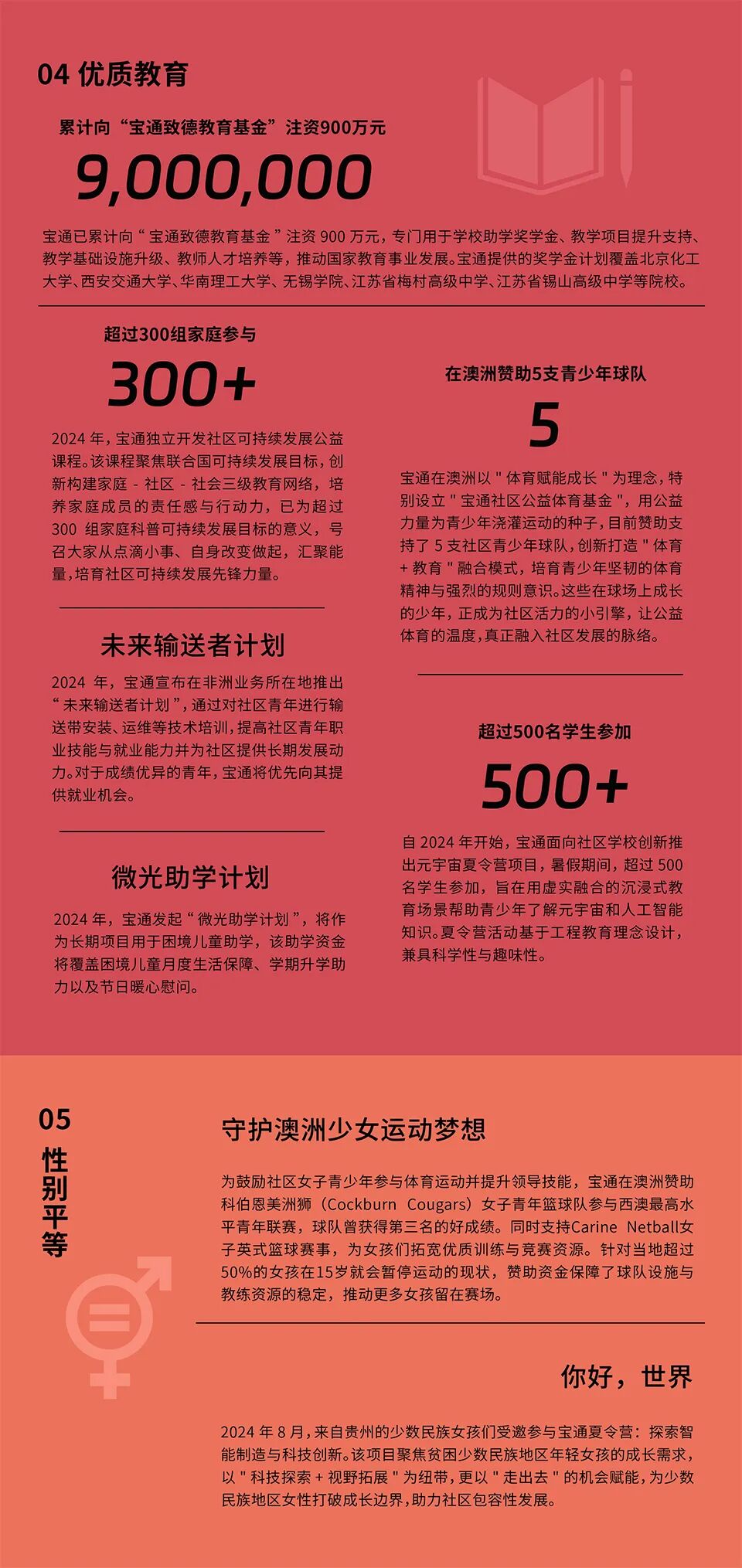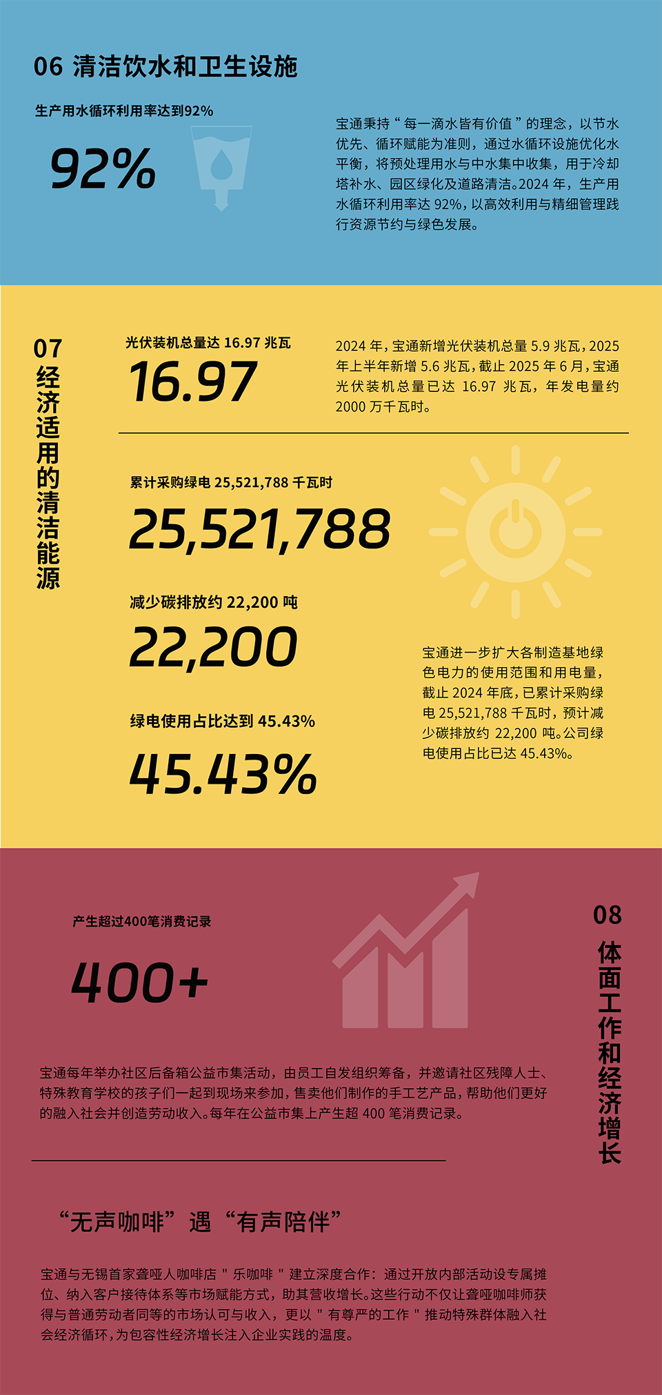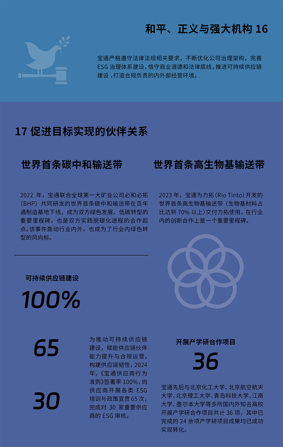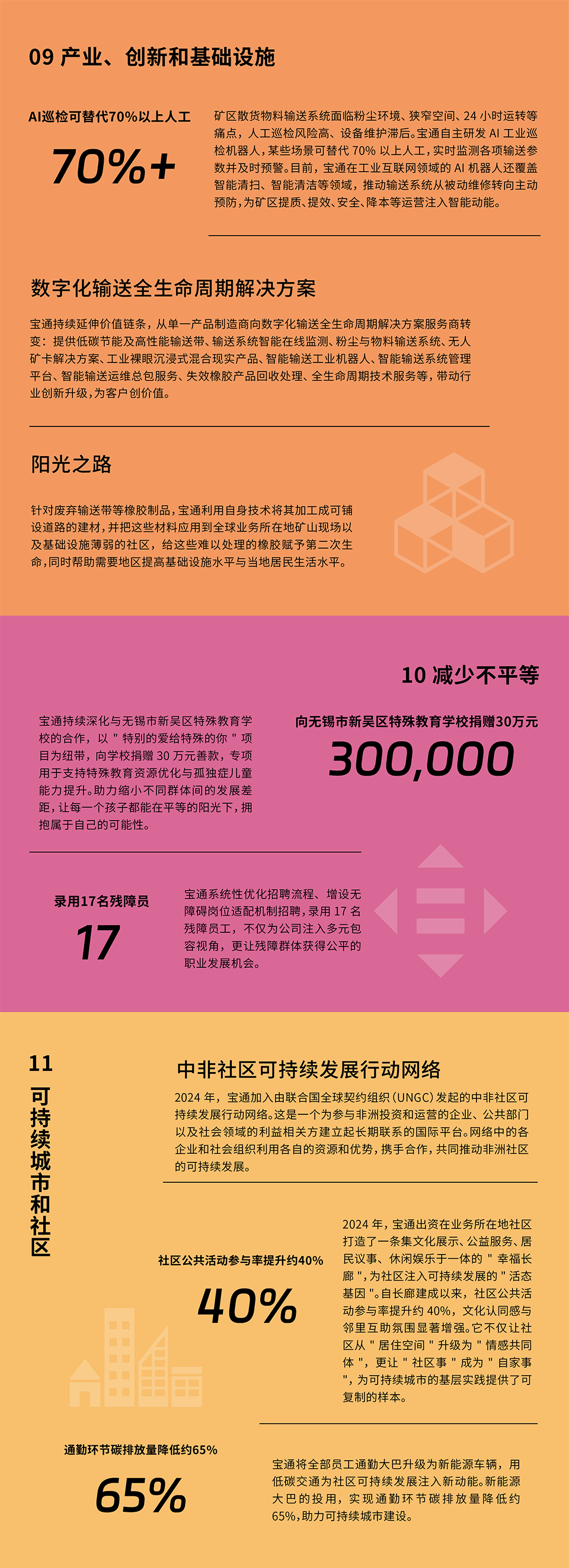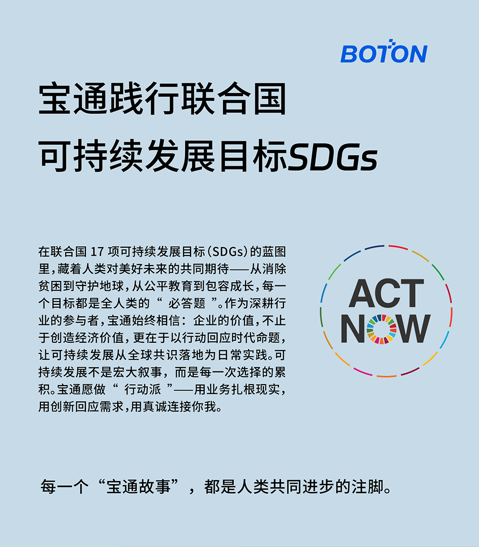 作为持续关注全球议题并积极投身实践的企业,宝通始终将可持续发展理念深度融入战略与运营,致力于在业务中落实SDGs要求,助力全球目标的实现。我们相信,企业不仅是经济价值的创造者,更是社会和环境责任的重要承担者。